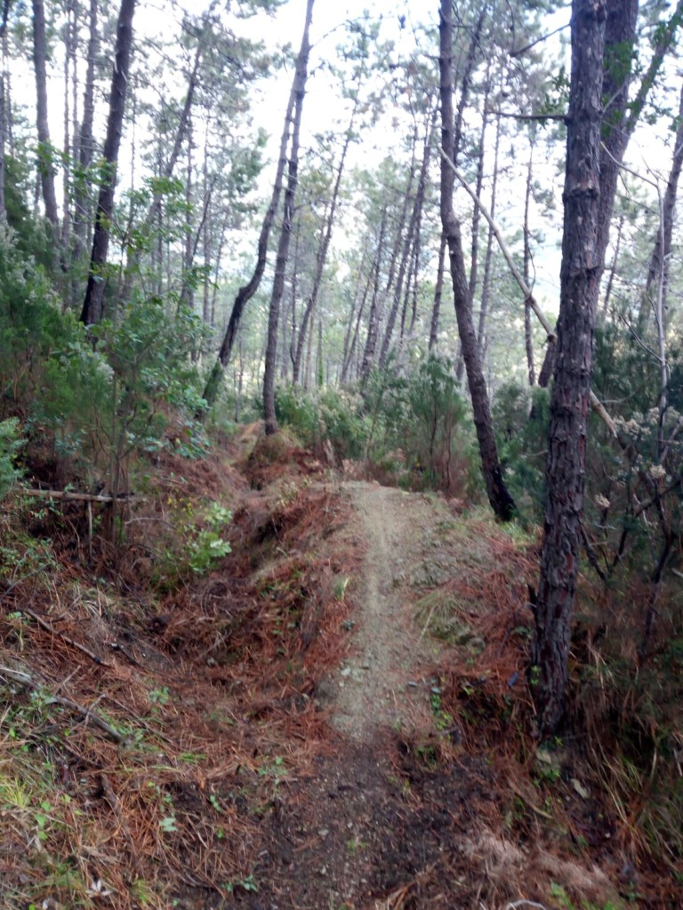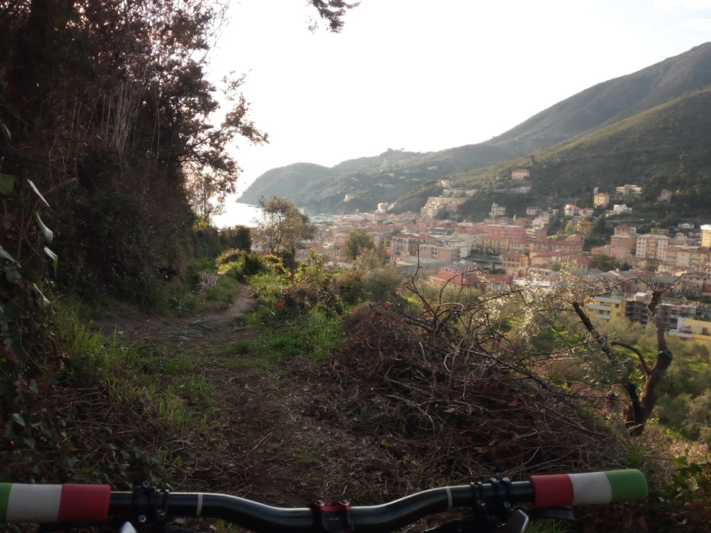 Il castello Malaspina, il campanile di Sant’Andrea e le ville sul lungomare: già questo basterebbe a ripagare la fatica, ma adesso inizia la discesa quindi non è proprio il caso di rilassarsi. La partenza è scattante, un tuffo nella pineta, un drop che immette in un lungo tracciato stretto e tortuoso che ogni tanto porta a salti più o meno elettrizzanti.